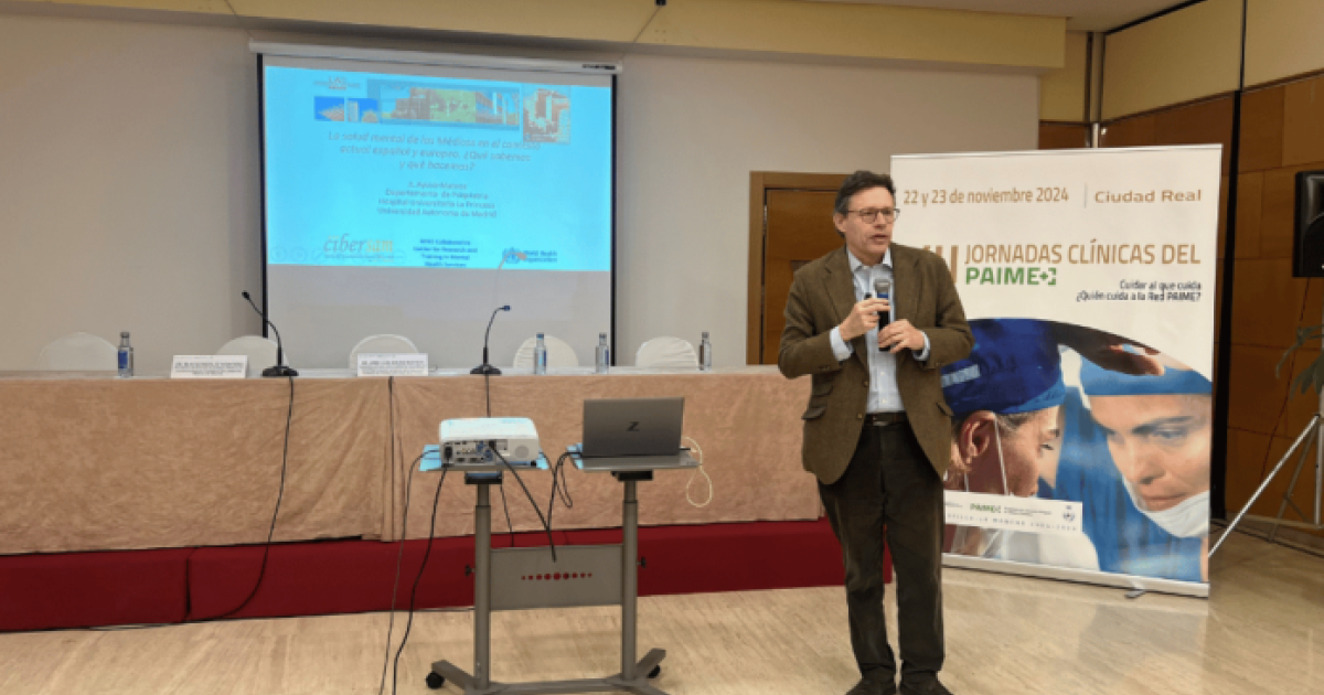 El Dr. José Luis Ayuso Mateos, catedrático y director del Centro Colaborador de la Organización Mundial de la Salud para Investigación y Docencia en Servicios de Salud Mental de la Universidad Autónoma de Madrid y jefe de servicio de Psiquiatría del Hospital Universitario de la Princesa, impartió la ponencia marco en las VII Jornadas clínicas del PAIME celebradas en Ciudad Real. La temática de esta conferencia fue ‘La salud mental de los médicos en el contexto actual español y europeo. ¿Qué sabemos y qué hacemos?’.