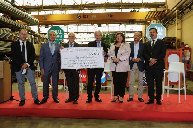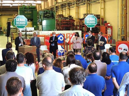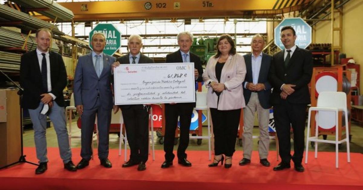 El grupo Industrias Saludes, especializado en señalización, seguridad vial, movilidad y equipamientos urbanos, ha entregado este jueves la recaudación obtenida en su campaña “Señal Solidaria: una Señal, un Gesto” a la Fundación para la Protección Social de la Organización Médica Colegial de España (FPSOMC), en un acto que ha tenido lugar en las instalaciones de la compañía en Alcácer (Valencia)