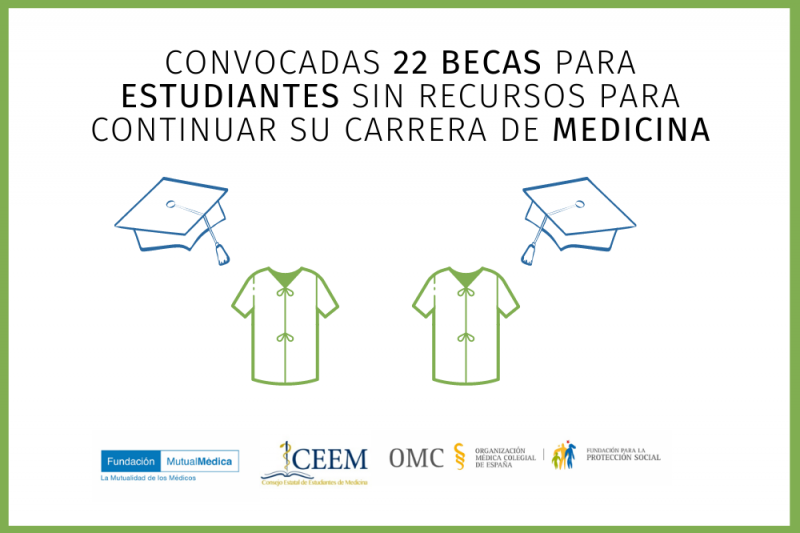 La Fundación para la Protección Social de la Organización Médica Colegial (FPSOMC), el Consejo Estatal de Estudiantes de Medicina (CEEM) y la Fundación Mutual Médica (FMM) han convocado veintidós ayudas a estudiantes de Medicina de toda España con dificultades económicas para contribuir a asegurar la continuidad de sus estudios universitarios